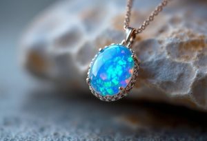 Pendentif opale bleue : la magie en bijou naturalisé