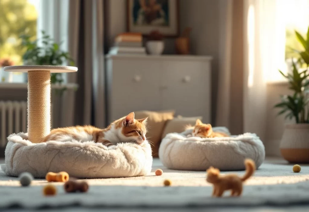 Le mobilier spécifique, tel que les griffoirs et arbres à chat, est indispensable au bien-être physique et mental du félin. Ces équipements limitent les dégâts sur les meubles et offrent un espace privilégié pour observer ou se reposer.